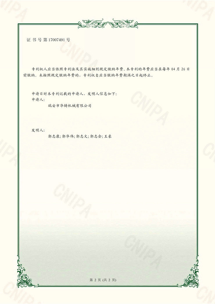 [上一條]:一種澆注機出料機構以及澆注機(專利證書)